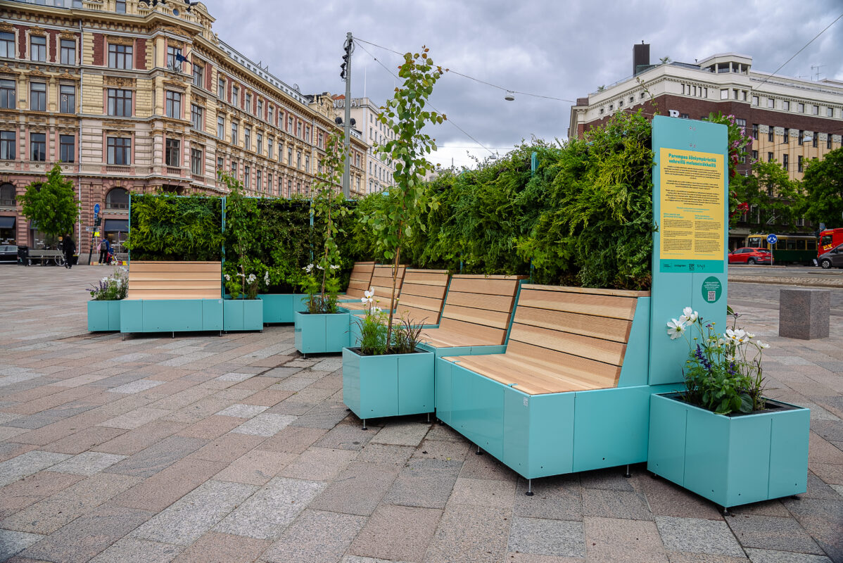 Vihreys siis voisi olla ratkaisu moniin tulevaisuuden haasteisiin, mutta kuinka vihreyttä voidaan tuoda jo rakennetuille pinnoille, kuten asfaltin ja kiven kattamille alueille? InnoGreenin viherpysäkki on modulaarinen viherratkaisu, jolla vihreyden voi tuoda mihin vain, sisälle ja ulos, keskustoista lähiöihin.